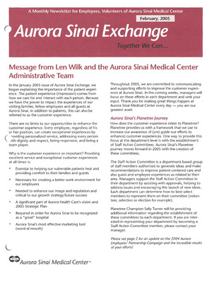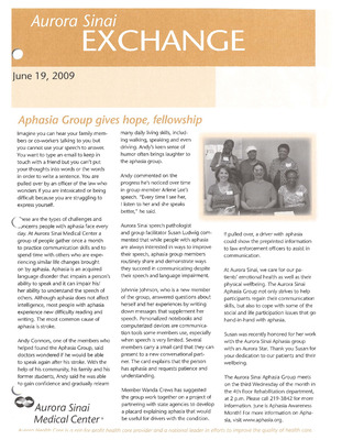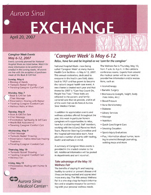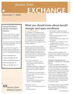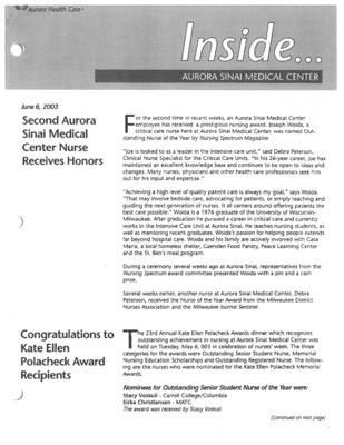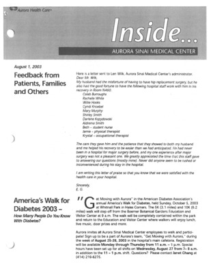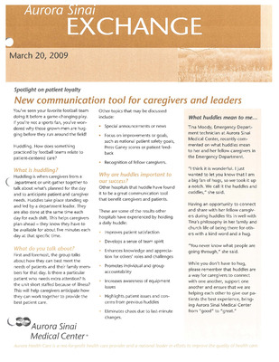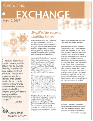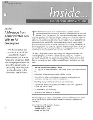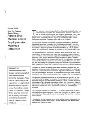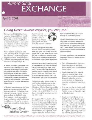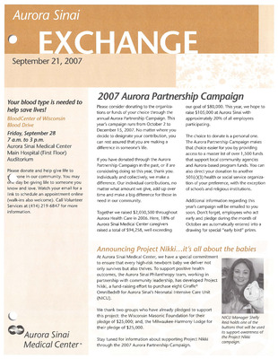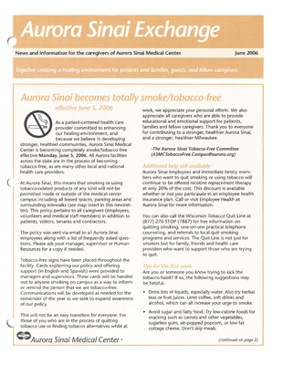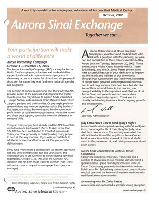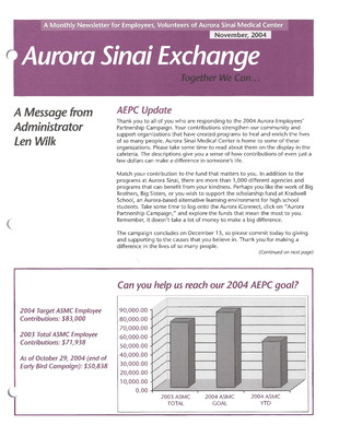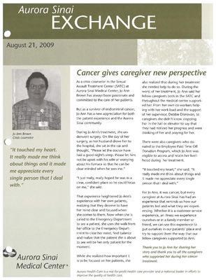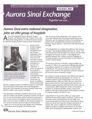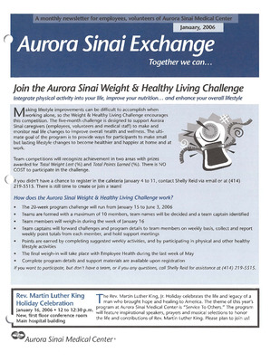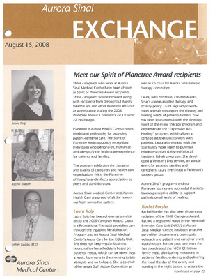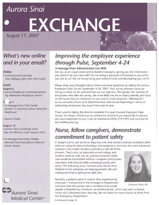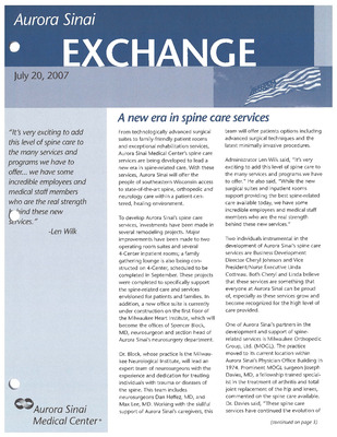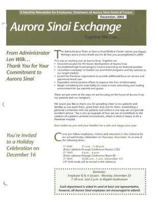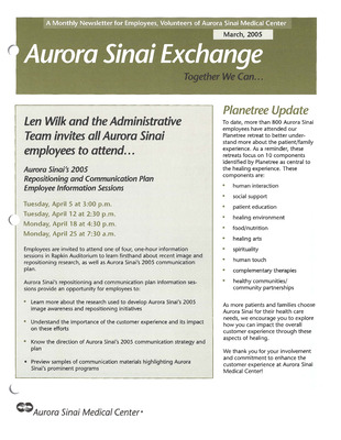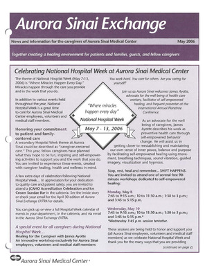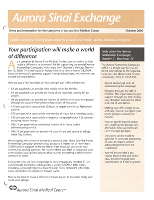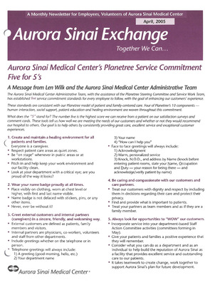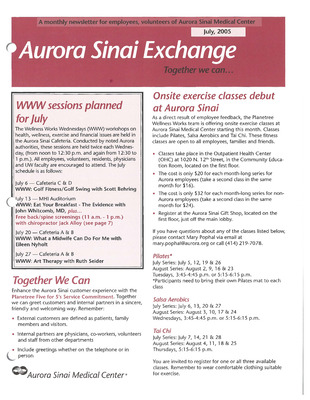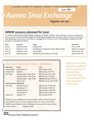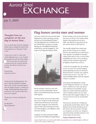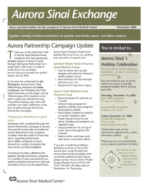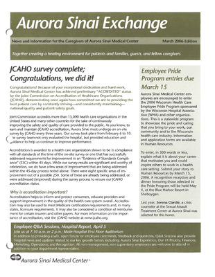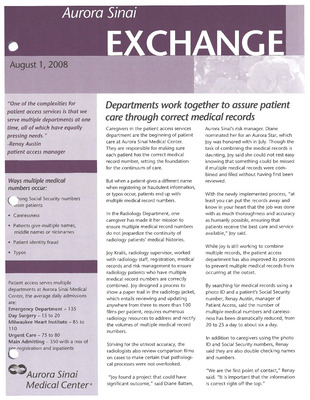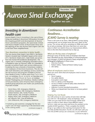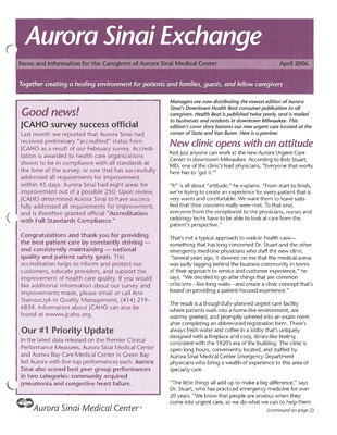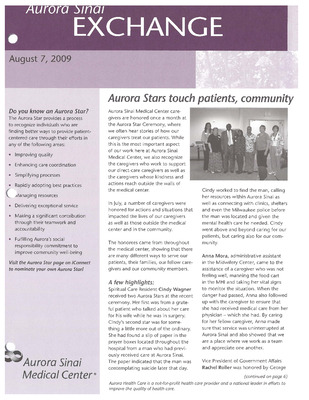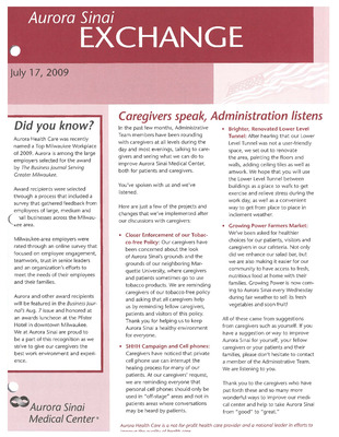 Aurora Sinai Medical Center, Milwaukee, WI: Internal employee newsletter with workplace anniversaries, news, and events.